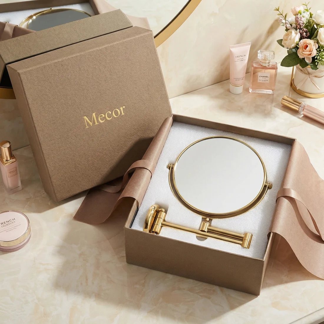 Optimisez l'espace de votre salle de bain sans sacrifier le style. Son mécanisme pliable fluide permet de ranger le miroir contre le mur, tandis que sa double face rotative s'adapte instantanément à tous vos besoins de maquillage ou de rasage.