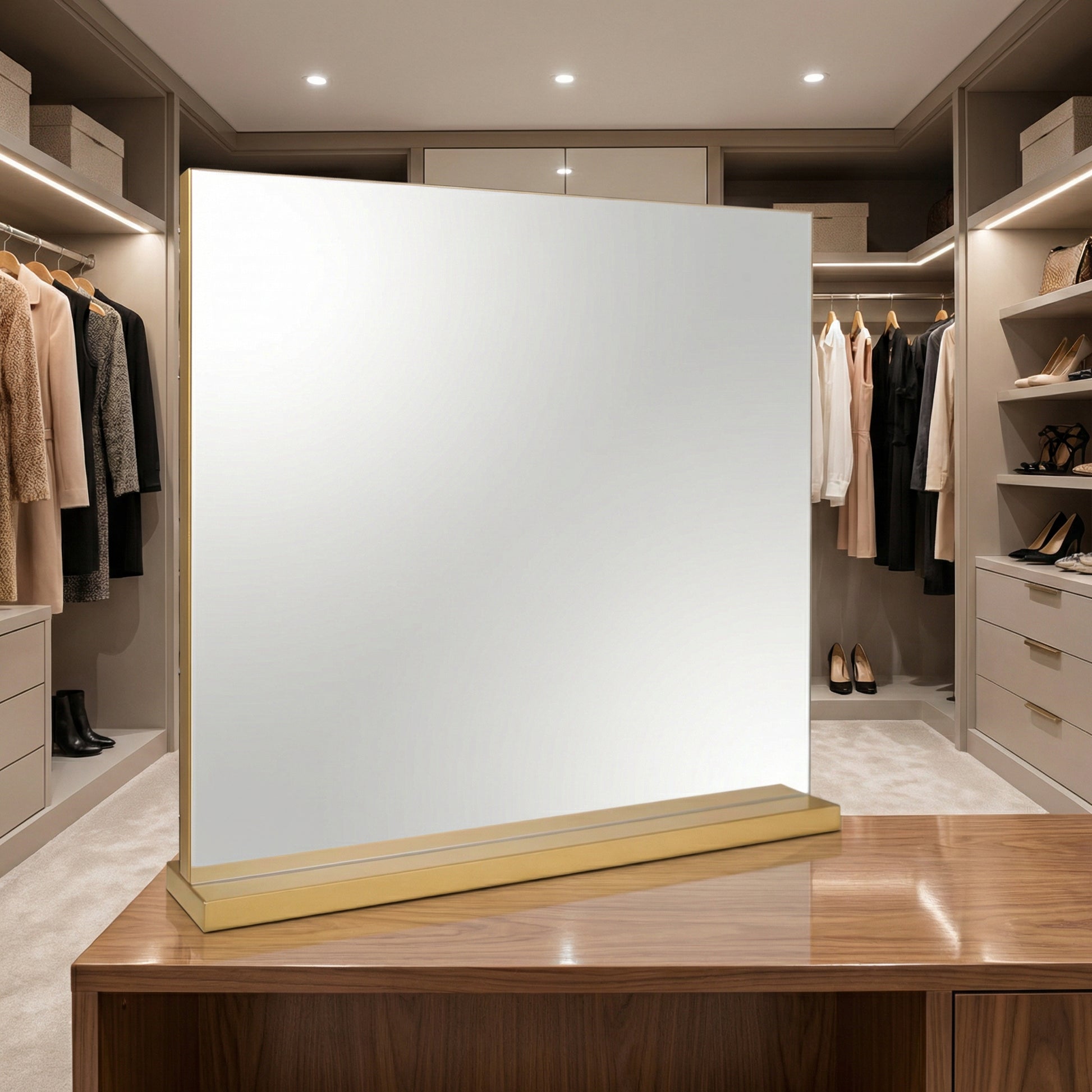• Design autoportant stable avec base lestée, idéal pour les consoles et espaces de maquillage professionnels.