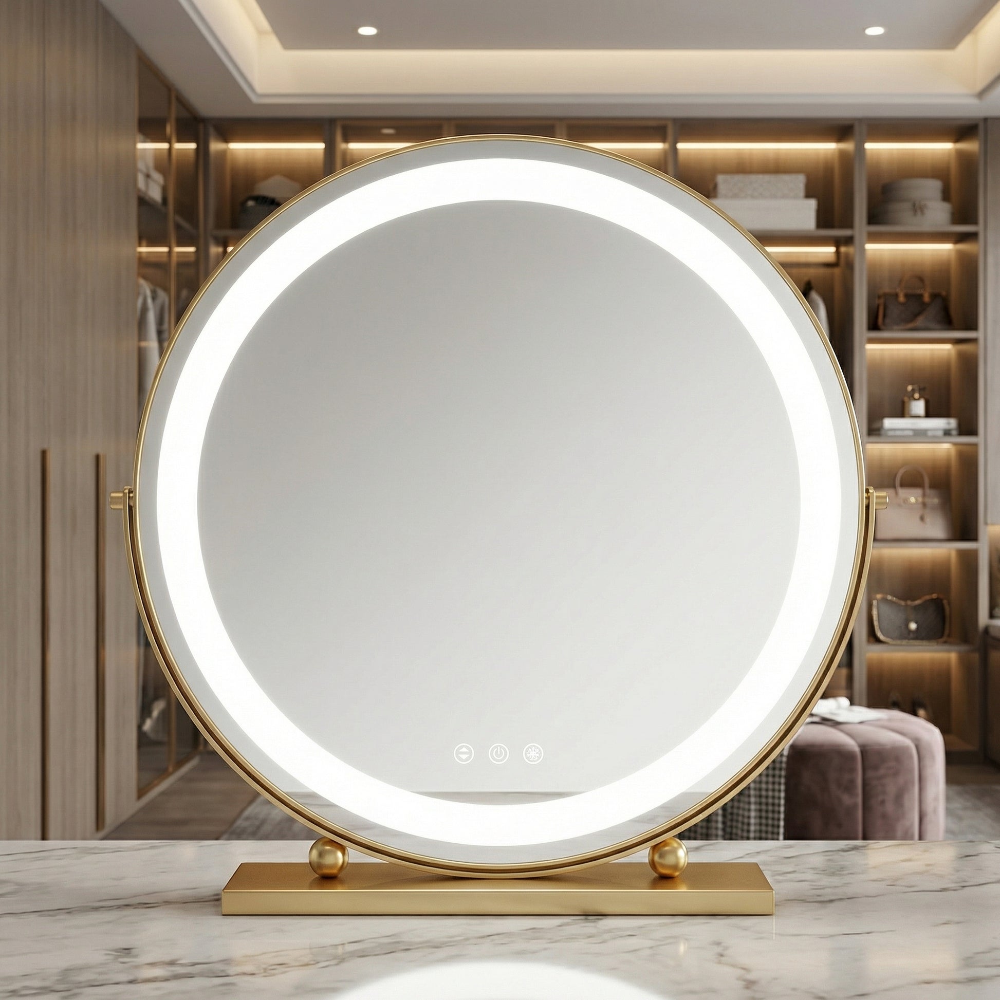 Sublimez votre routine beauté avec ce miroir Hollywood exclusif signé Mecor. Conçu pour les passionnés de cosmétiques et les professionnels, il allie une esthétique minimaliste luxueuse à une technologie d'éclairage de pointe, transformant chaque séance de maquillage en une véritable expérience d'atelier français.